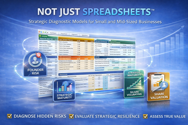 Together, these models create a comprehensive diagnostic framework that allows advisors to evaluate leadership dynamics, operational strength, financial resilience, and enterprise value within a single integrated system.